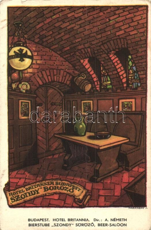 Budapest VI. Teréz körút és Szondi utca sarok, Hotel Britannia, Szondy söröző, belső s: Haranghy J. (kis szakadás / small tear)