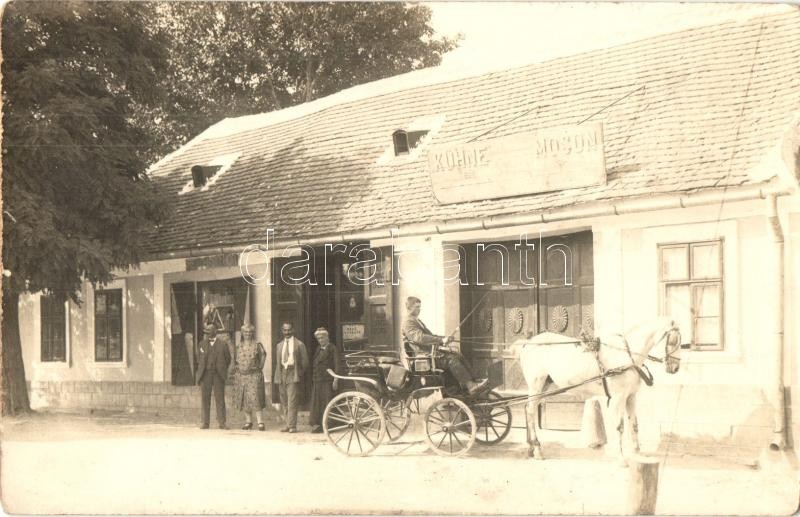 Moson, Reichard Mór üzlete, Kühne gépgyár üzlete, lovas fogat, photo (...