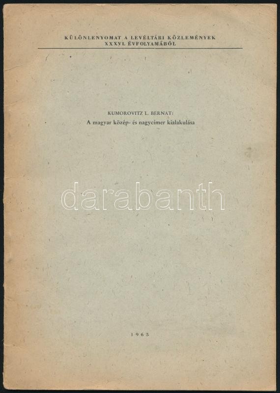 Kumorovitz L. Bernát: A magyar közép- és nagycímer kialakulása. Klny. ... https://www.darabanth.com/en/295-Online-auction/295.0/Books/Books-History~500004/Kumorovitz-L-Bernat-A-magyar-kozep-es-nagycimer-kialakulasa-Klny-a-Leveltari-Kozlemen~II1566578