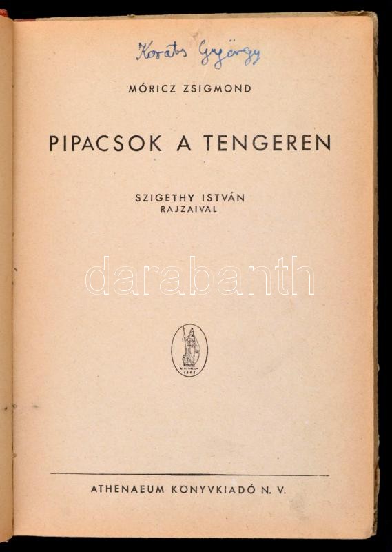 Móricz Zsigmond: Pipacsok a tengeren. Szigethy István rajzaival. Bp., ... https://www.darabanth.com/en/295-Online-auction/295.0/Books/Books-Other-rarities~500017/Moricz-Zsigmond-Pipacsok-a-tengeren-Szigethy-Istvan-rajzaival-Bp-1938-Athenaeum-Elso-kia~II1570817