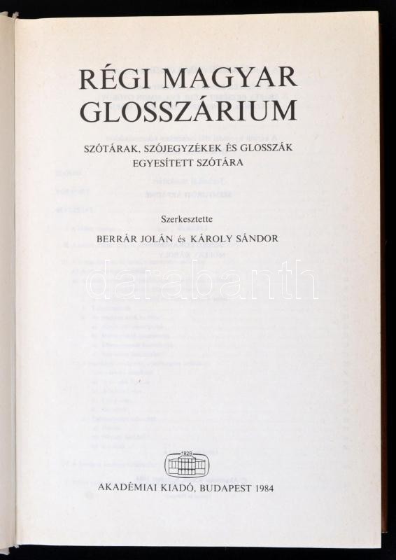 Régi magyar glosszárium. Szótárak, szójegyzékek, és glosszák egyesítet... https://www.darabanth.com/en/295-Online-auction/295.0/Books/Books-Other-rarities~500017/Regi-magyar-glosszarium-Szotarak-szojegyzekek-es-glosszak-egyesitett-szotara-Szerk-~II1571263