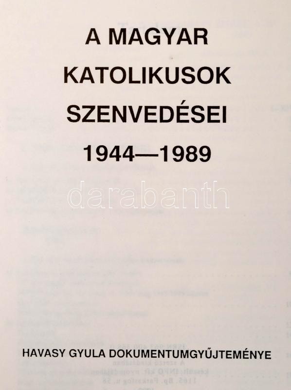 A magyar katolikusok szenvedései 1944-1989. ... https://www.darabanth.com/en/295-Online-auction/295.0/Books/Books-Religion~500013/Vegyes-konyvtetel-2-db--A-magyar-katolikusok-szenvedesei-1944-1989-Havasy-Gyula-dokumentumgyu~II1566152