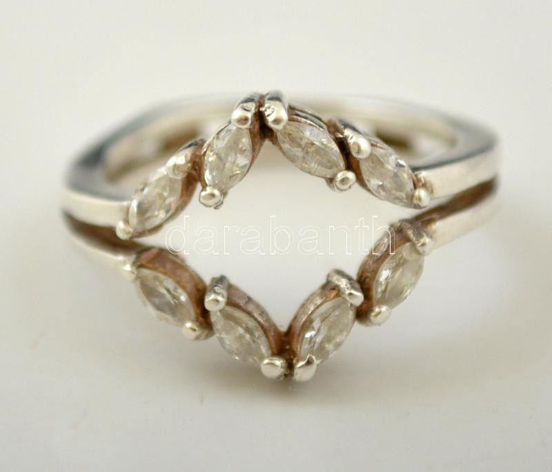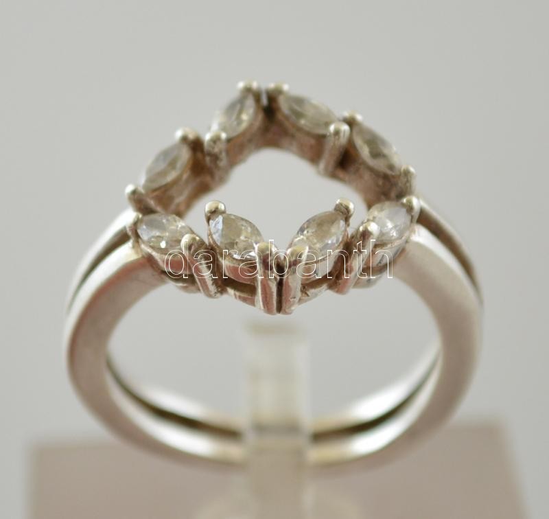 Ezüst(Ag) dupla soros gyűrű, üveg kövekkel, jelzett, méret: 54, bruttó...