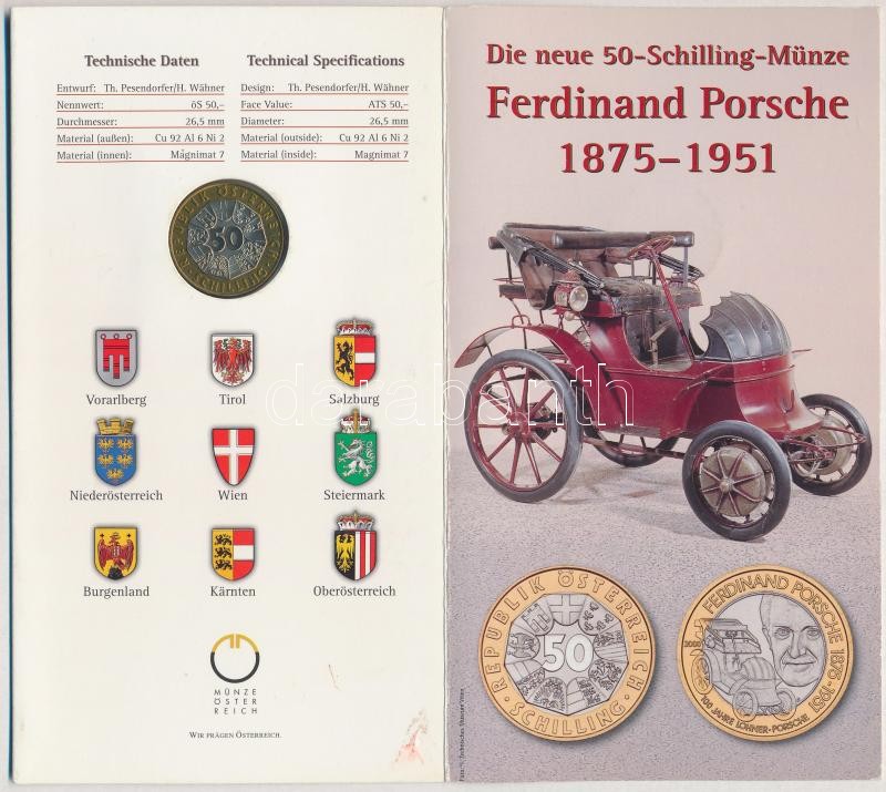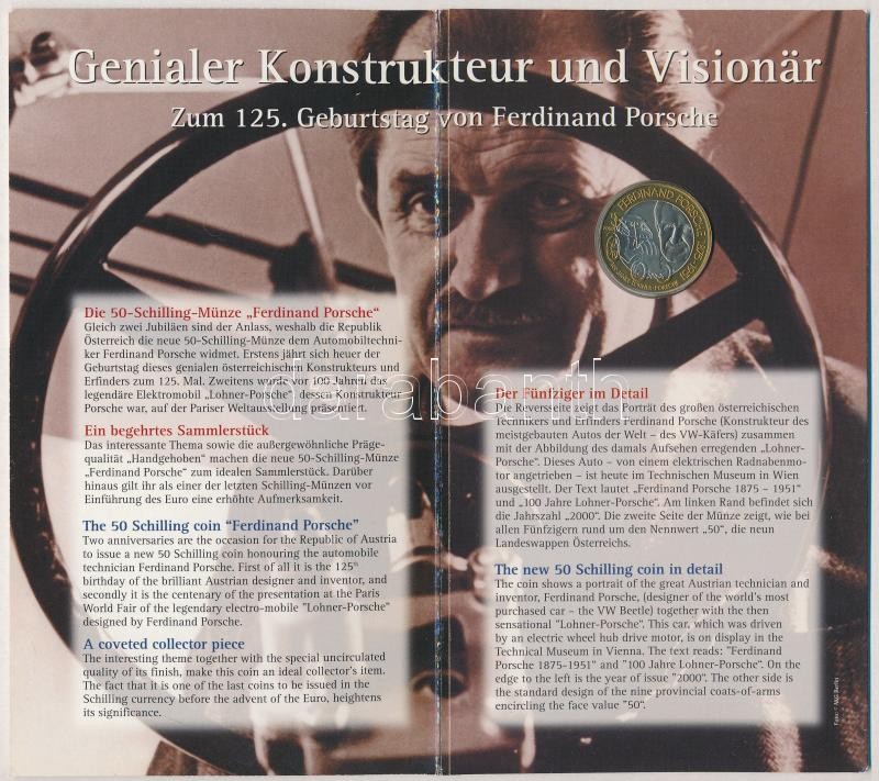 Ausztria 2000. 50Sch Cu-Ni-Al-Br "Porsche" karton díszcsomagolásban T:... https://www.darabanth.com/en/295-Online-auction/295.0/Numismatics/Worldwide-silver-and-metal-coins~400013/Ausztria-2000-50Sch-Cu-Ni-Al-Br-Porsche-karton-diszcsomagolasban-TBU--Austria-2000-50-Schilli~II1572852