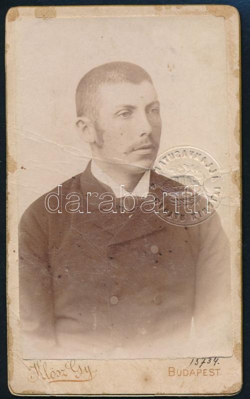 1900 Klösz György műtermében készült férfiportré, amelynek hátoldalára... https://www.darabanth.com/en/295-Online-auction/295.0/Other-collectibles/Documents~200018/1900-Klosz-Gyorgy-mutermeben-keszult-ferfiportre-amelynek-hatoldalara-nevre-szolo-vasC3~II1569005