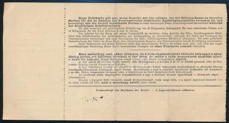 1906 Első cs. kir. szab. Duna-gőzhajózási Társaság DDSG szabadjegy, 10...