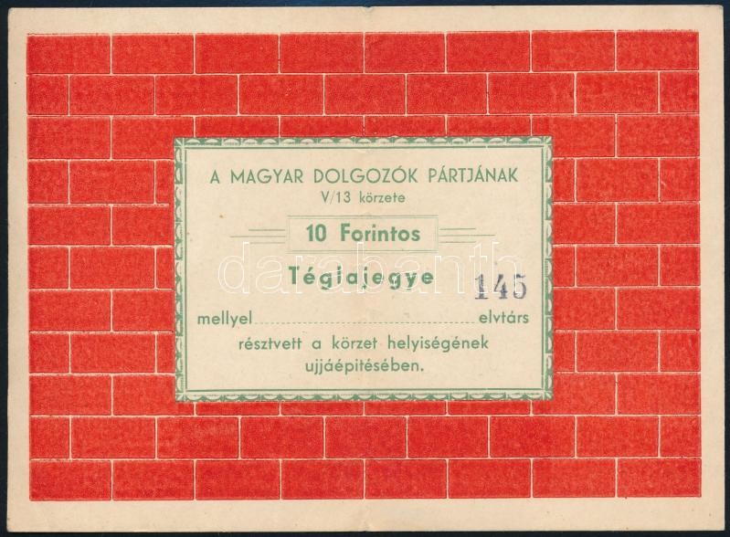 cca 1950-1960 A Magyar Dolgozók pártjának 10 forintos téglajegye, hajt...