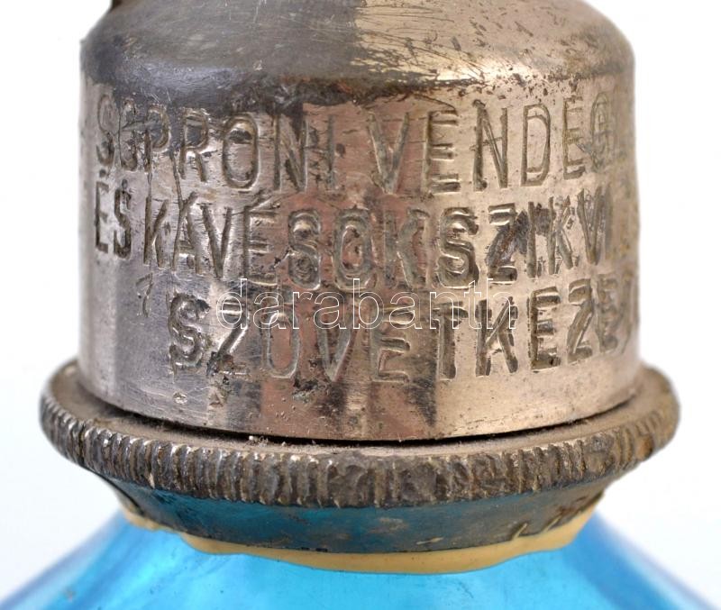 Régi szódás üveg, "Vetős Sándor Budapest" felirattal, lepattanásokkal,...