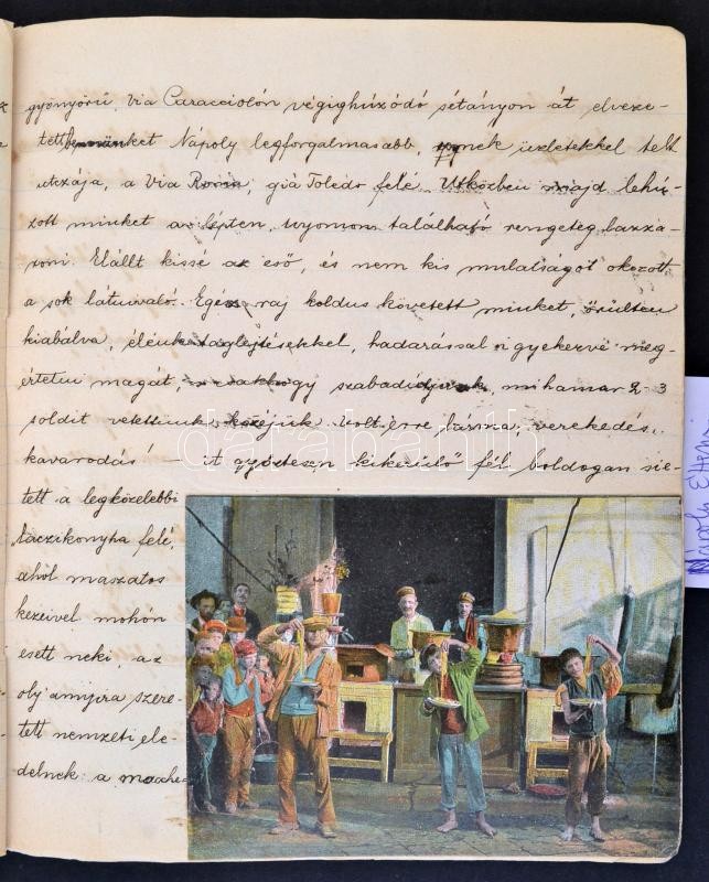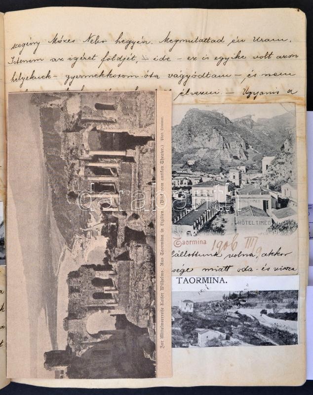 cca 1906 Tóthfalusy Lászlóné (született Weiser Baby), kézzel írt útinaplója olaszországi utazásáról, beragasztott képekkel, képeslapokkal, hiányzó borítóval