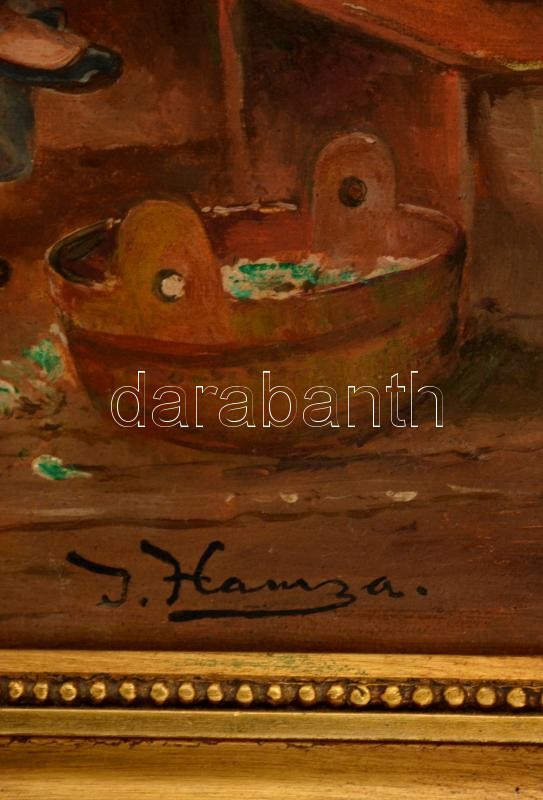 Hamza jelzéssel: Udvarlás. Olaj, falemez, keretben, 33×42 cm