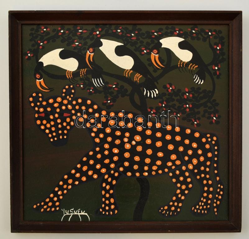 Yusufu jelzéssel: Egzotikus állatok. Olaj, farost, keretben, 29×30 cm