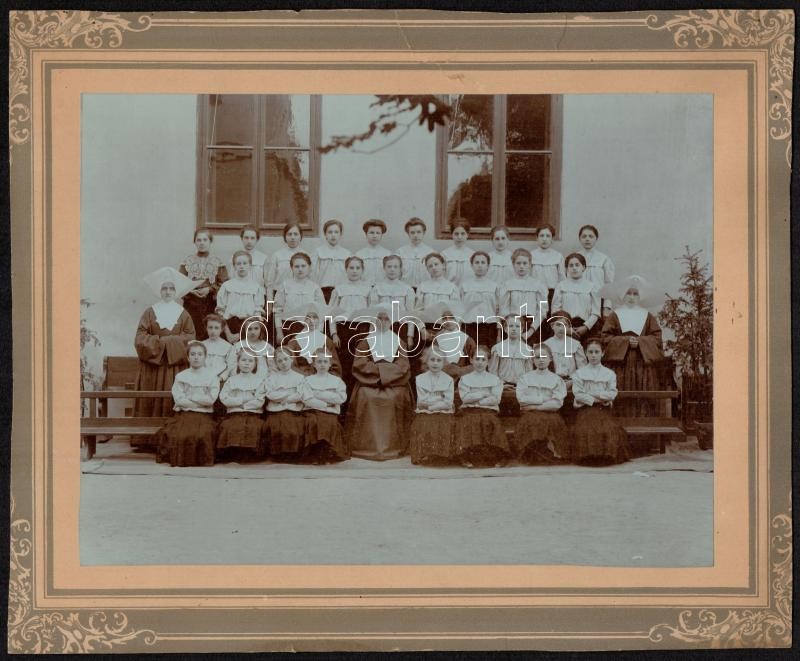 cca 1910 Egyházi lányiskola tanulói, csoportkép, kartonra ragasztva, 1...