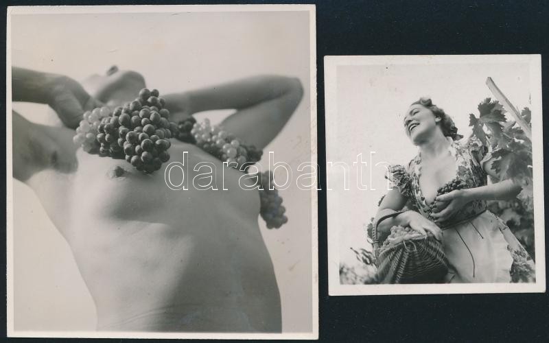 cca 1935 Dr. Csörgeő Tibor (1896-1968): Szüreti huncutságok, 2 db jelzés nélküli vintage fotó a szerző hagyatékából, 6x5,5 cm és 8,5x8 cm