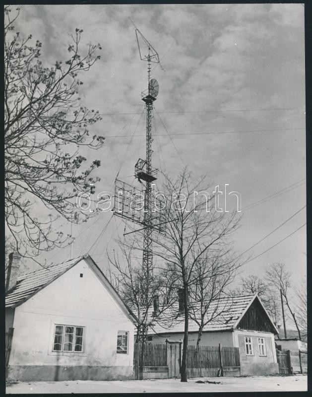 cca 1970 Hajdúnánás, Nagy Gyula rádióamatőr által épített 40 m magas adótorony, vintage fotó, 22x17 cm