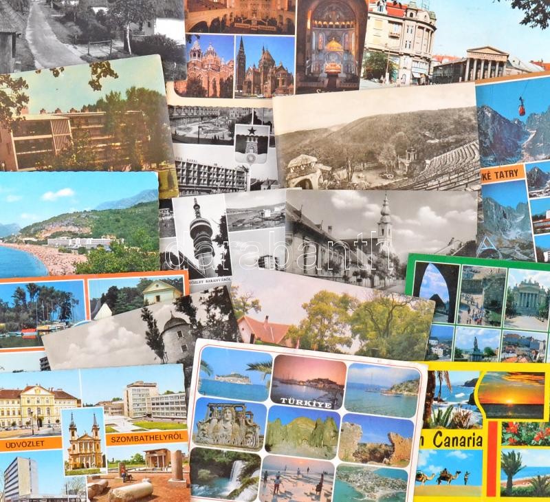 Kb. 450 db MODERN magyar és külföldi városképes lap dobozban / Cca. 450 modern Hungarian and European town-view postcards in a box