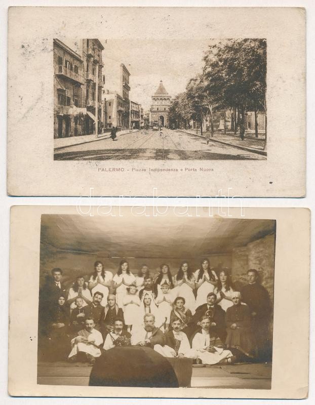 Description: 21 db RÉGI képeslap, magyar és külföldi városokkal és motívumokkal, vegyes minőség / 21 pre-1945 postcards, Hungarian and European towns with motive cards