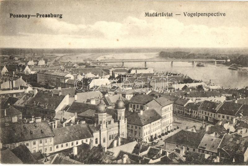 Pozsony, Pressburg, Bratislava; látkép a zsinagógával / panorama view ...
