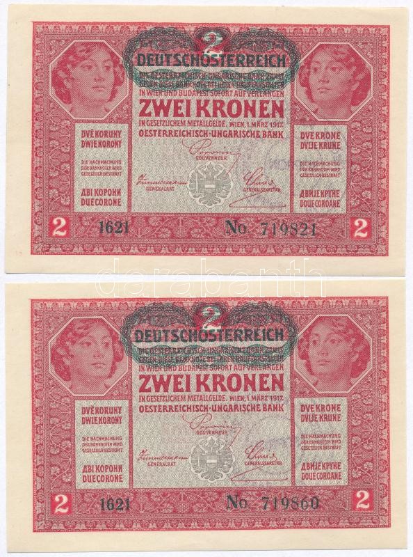1917. 2K (2x) mindkettő "Deutschösterreich" felülbélyegzéssel és hamis...