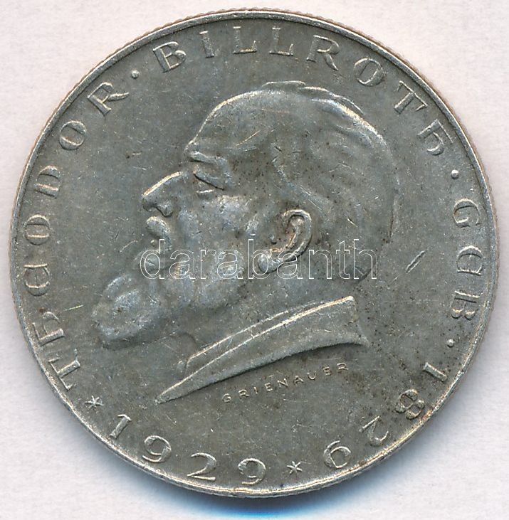 Ausztria 1929. 2Sch Ag "Dr. Theodor Billroth születésének 100. évfordu... https://www.darabanth.com/en/296-Online-auction/296.0/Numismatics/Worldwide-silver-and-metal-coins~300024/Ausztria-1929-2Sch-Ag-Dr-Theodor-Billroth-szuletesenek-100-evforduloja-T2-kis-ph--Austri~II1573380
