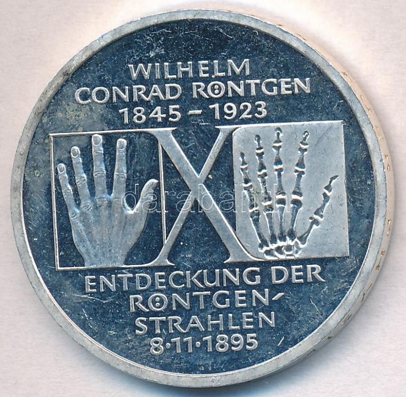 Németország 1995D 10M Ag "150 éve született Wilhelm Conrad Röntgen - 1... https://www.darabanth.com/en/296-Online-auction/296.0/Numismatics/Worldwide-silver-and-metal-coins~300024/Nemetorszag-1995D-10M-Ag-150-eve-szuletett-Wilhelm-Conrad-Rontgen--100-eves-az-X-sugar-T1~II1573206
