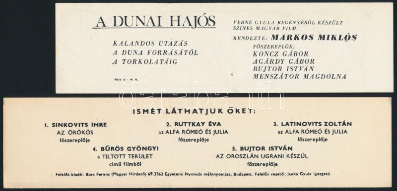2 db könyvjelző (A dunai hajós, Alfa Rómeó és Júlia)