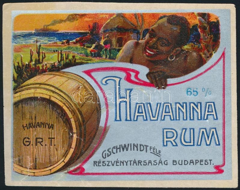 cca 1920 Gschwindt Havanna Rum italcímke, litográfia, 8,5x7 cm