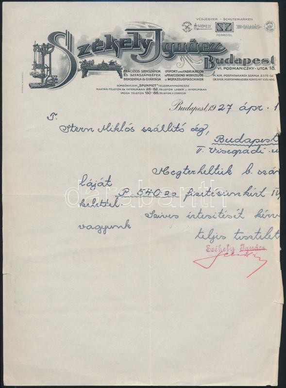 https://www.darabanth.com/en/296-Online-auction/296.0/Other-collectibles/Documents~16/1927-Szekely-Ignacz-precizios-szerszamok-es-szerszamgepek-diszes-fejleces-szamlaja-szak~II1579089