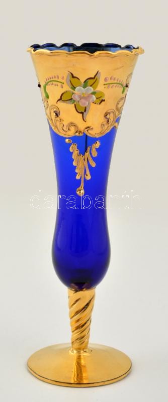 Dekoratív színes üveg váza, kézzel festett, jelzés nélkül, hibátlan, m: 21 cm