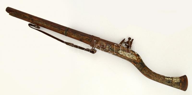 XVIII-XIX. századi fegyver, Gyöngyház berakással, megviselt állapotban, hiányos / Vintage waffle in bad condition with missing parts 100 cm