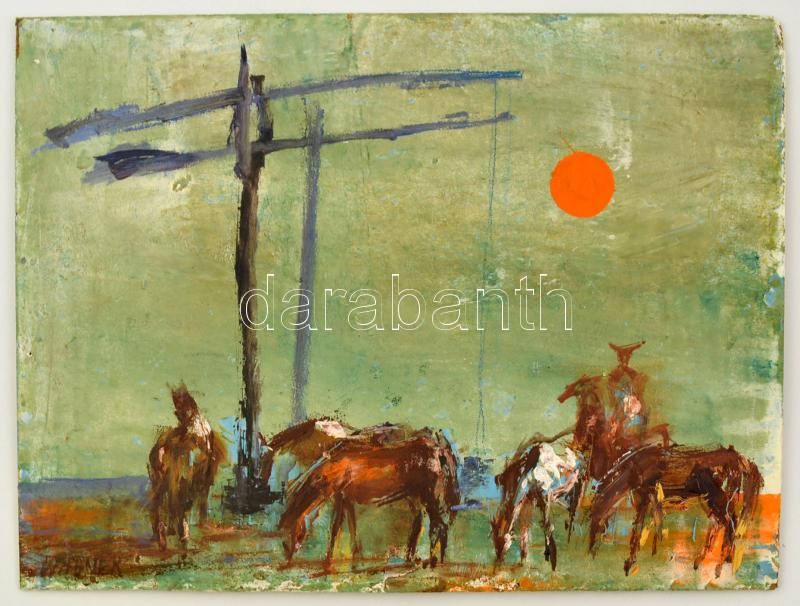 Wágner János (1936-): A kútnál, olaj, farost, 31×41,5 cm