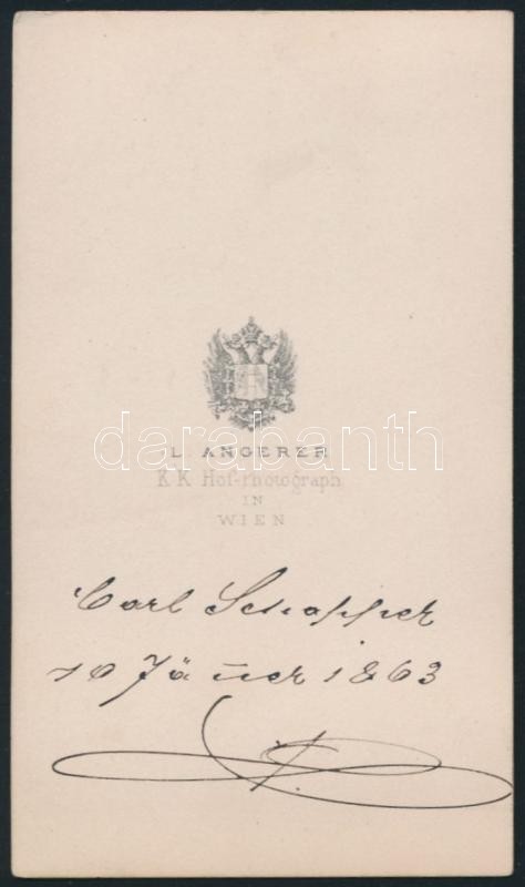 1863 Feliratozott (de nehezen olvasható), vizitkártya méretű fénykép, Angerer bécsi műterméből, a Holbauer család albumából kiemelve, 10,5x6 cm