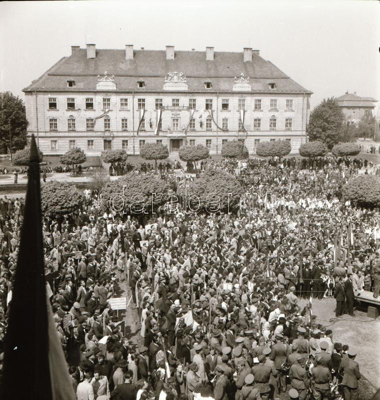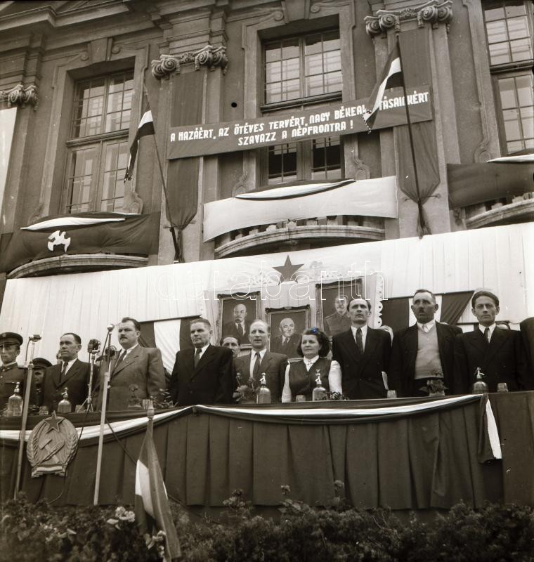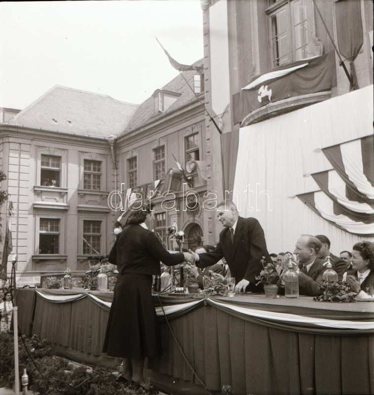 1968 Komárom, Dobi István politikai gyűlése, választási beszámolója, 13 db vintage negatív Kotnyek Antal (1921-1990) fotóriporter hagyatékából, 6x6 cm