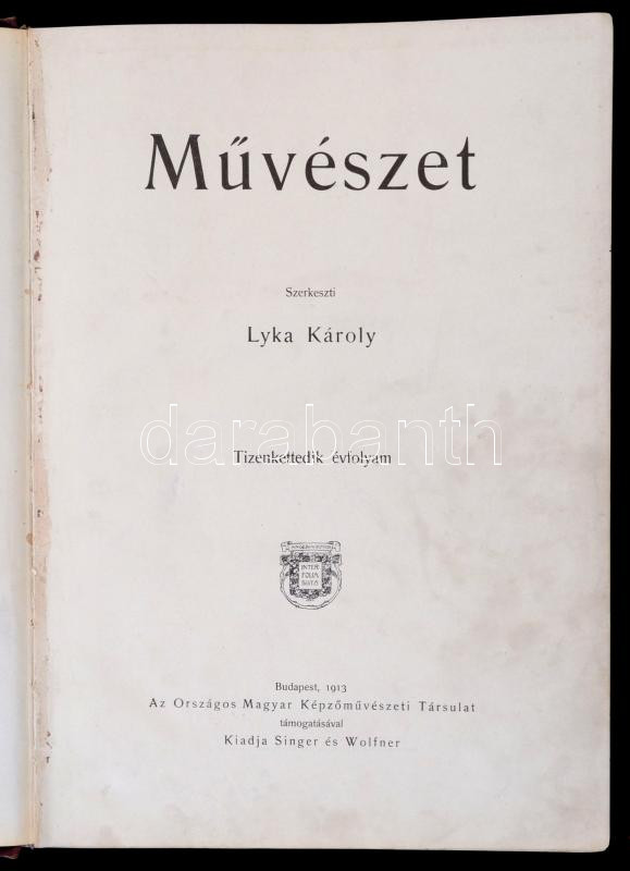 Lyka Károly(szerk.): Művészet, XII. évfolyam. Bp., 1913, Singer és Wol... https://www.darabanth.com/en/296-Online-auction/296.0/Other-collectibles/Printed-Materials~27/Lyka-Karolyszerk-Muveszet-XII-evfolyam-Bp-1913-Singer-es-Wolfner-Kepekkel-illusztrC3~II1506363