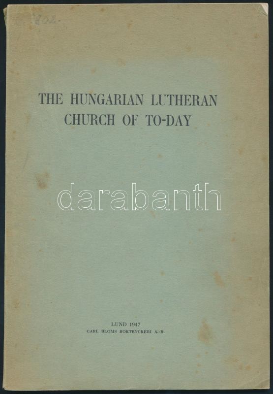 The Hungarian Lutheran Church of Today. Lund, 1947, Carl Bloms Boktryc... https://www.darabanth.com/en/296-Online-auction/296.0/Selected-items-and-collections-from-the-auction/Books-Religion~41/The-Hungarian-Lutheran-Church-of-Today-Lund-1947-Carl-Bloms-Boktryckeri-Kiadoi-papirkotes-k~II1577154