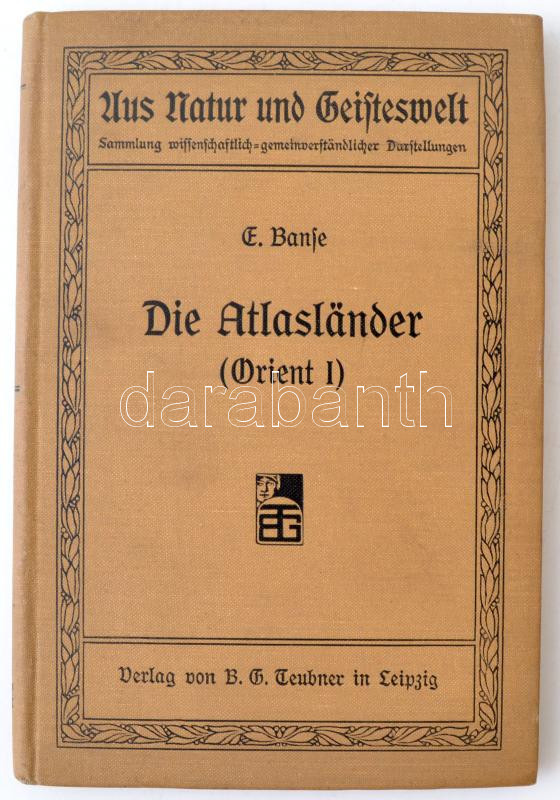Banse, Ewald: Die Atlaländer (Orient I). Eine Länderkunde. Leipzig, 1910, B. G. Teubner (Aus Natur und Geisteswelt 277.). Díszes vászonkötésben, jó állapotban.
