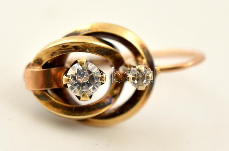 https://www.darabanth.com/en/296-Online-auction/296.0/Selected-items-and-collections-from-the-auction/Jewellery~45/Arany-14K-fulbevalo-cirkon-kovel-egyik-kis-ko-hianyzik-jelzett-brutto-3-g~II1580655