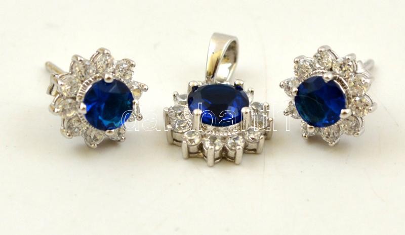 Ezüst(Ag) fülbevalópár és hozzáillő függő szintetikus kövekkel, jelzet...