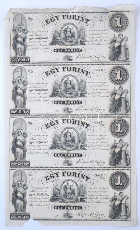 1852. 1Ft "Kossuth bankó" kitöltetlen A,B,C,D 4-es ívben T:III szélén ... https://www.darabanth.com/en/297-Online-auction/297.0/Numismatics/Hungarian-Banknotes~500007/1852-1Ft-Kossuth-banko-kitoltetlen-A-B-C-D-4-es-ivben-TIII-szelen-szakadasok--Hungary-1852~II1590778
