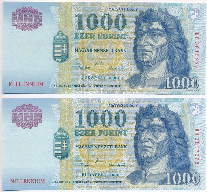 2000. 1000Ft "MILLENIUM" (2x) "DC" és "DD" T:II-,III szép papír