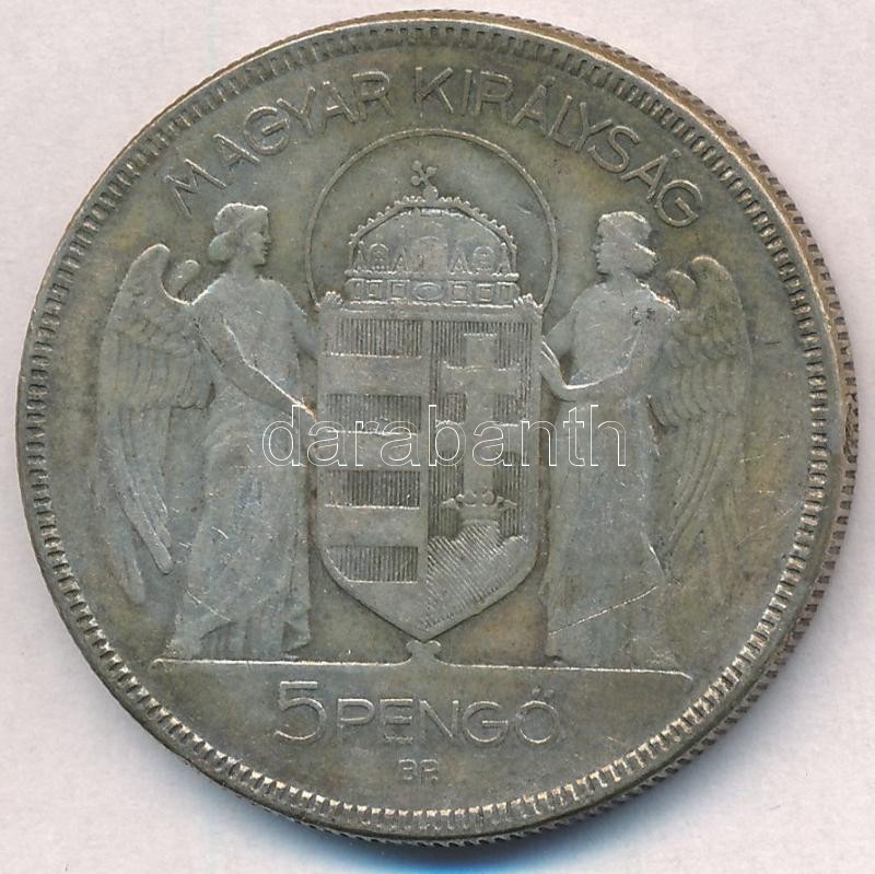https://www.darabanth.com/en/297-Online-auction/297.0/Numismatics/Hungarian-coins-and-coins-with-Hungarian-mint-marks~500008/1930-5P-Ag-Horthy-jobbra-T3-ph--Adamo-P8~II1585129
