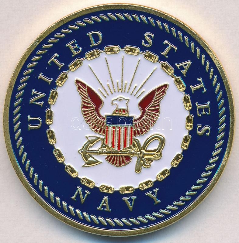 Amerikai Egyesült Államok DN "Egyesült Államok Haditengerészete" aranyozott, színes fantáziapénz T:1 USA ND "United States Navy" gold plated, colored fantasy coin C:UNC
