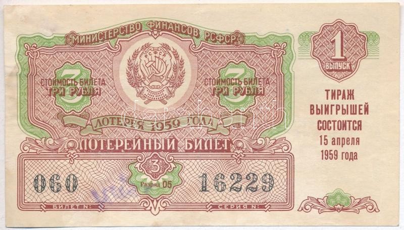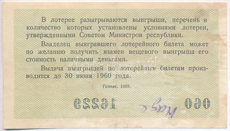 Szovjetunió 1959. Lottó sorsjegy 3R értékben T:III