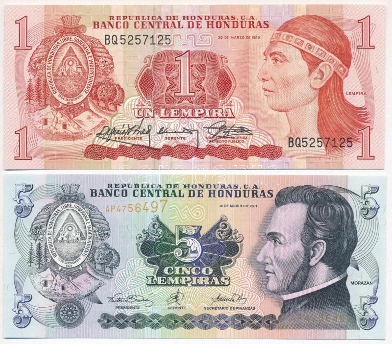 Honduras 1989. 1 Lempira + 2001. 5 Lempiras C:UNC