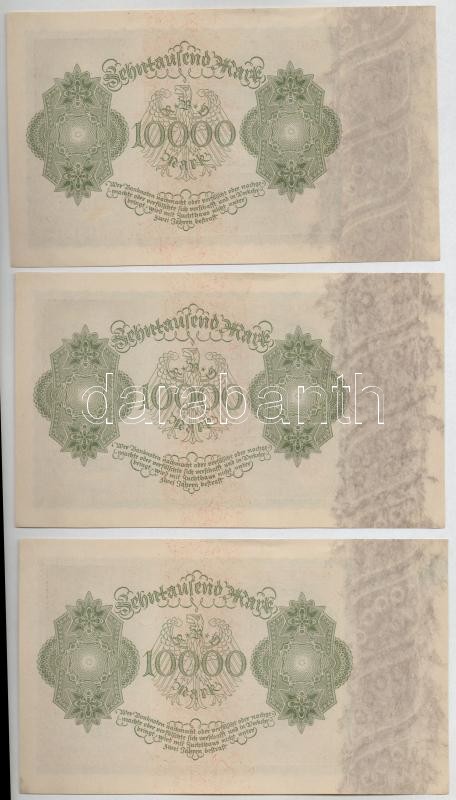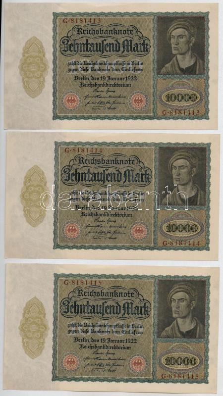 Németország / Weimari Köztársaság 1922. 10.000M (6x) sorszámkövetők T:I,I- Germany / Weimar Republic 1922. 10.000 Mark (6x) sequential serials C:UNC,AU