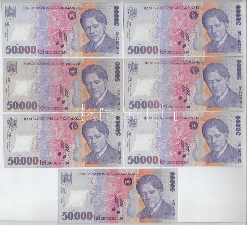 https://www.darabanth.com/en/297-Online-auction/297.0/Numismatics/Worldwide-banknotes~500012/Romania-2001-50000L-7x-kozte-2db-kozeli-sorszam-TI-II-II---Romania-2001-50000-Lei-7x-i~II1570222