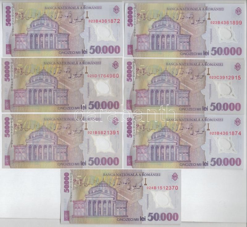 Románia 2001. 50.000L (7x) közte 2db közeli sorszám T:I-,II,II-