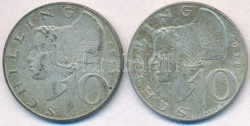 https://www.darabanth.com/en/297-Online-auction/297.0/Numismatics/Worldwide-silver-and-metal-coins~500020/Ausztria-1958-10Sch-Ag-plus-1970-10Sch-Ag-T2-patina--Austria-1958-10-Schilling-Ag-plus-1970-10-Schill~II1590938