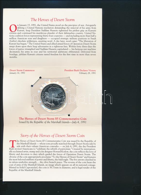 Marshall-szigetek 1991. 5$ Cu-Ni "A Sivatagi Vihar hőseinek" fóliatokban, tájékoztató lappal T:1