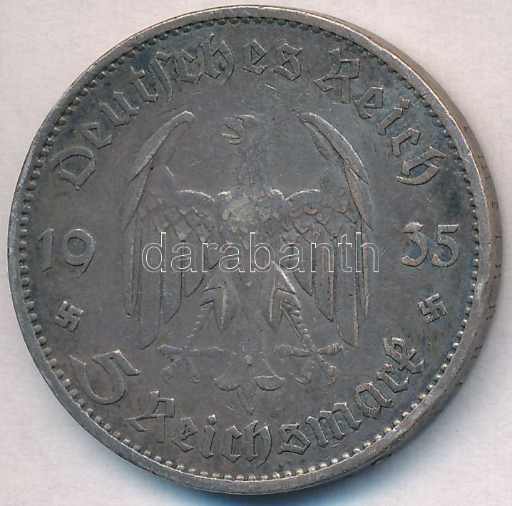 Német Harmadik Birodalom 1935A 5M Ag "Náci hatalom első évfordulója" T... https://www.darabanth.com/en/297-Online-auction/297.0/Numismatics/Worldwide-silver-and-metal-coins~500020/Nemet-Harmadik-Birodalom-1935A-5M-Ag-Naci-hatalom-elso-evforduloja-T2-2-ph-u-patina---~II1580331