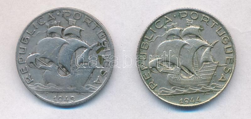 Portugal 1943-1944. 2 1/2 Escudos Ag (2x) C:XF,F